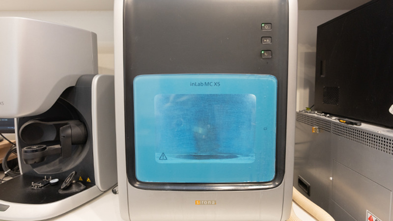 シロナ社のミリングマシン「X5」を院内に導入し、補綴物を院内で製作できる体制を整えています。外部委託に比べて製作スピードが速く、適合性の高い被せ物を精密に仕上げることが可能です。
